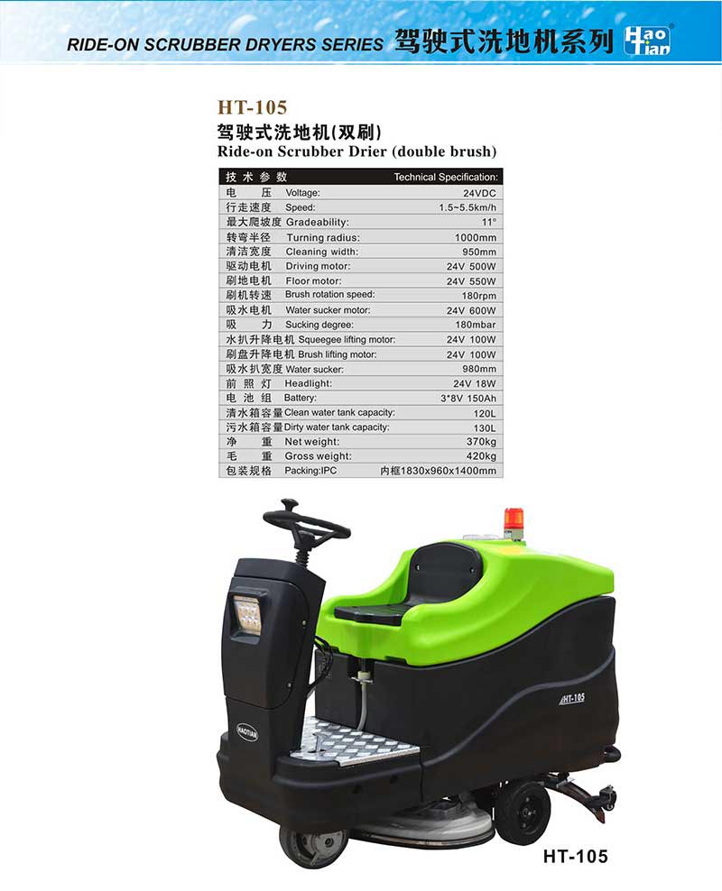 HT-105駕駛式洗滌劑(雙刷) 主頁>>洗地機(jī)>HT-105駕駛式洗滌劑(雙刷)>