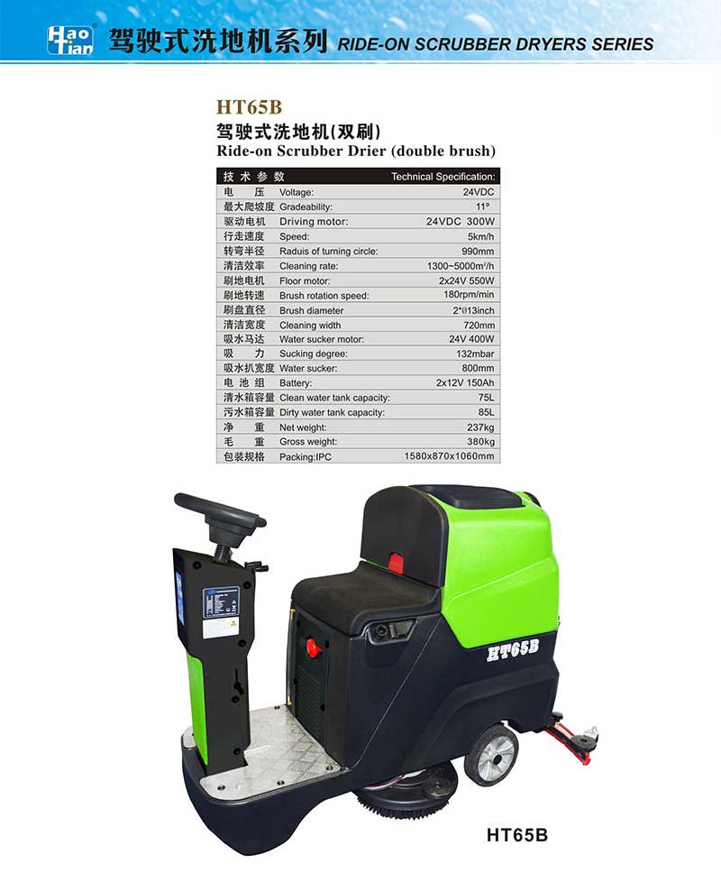 HT65B駕駛式洗地機(jī)(雙刷) 主頁(yè)>>洗地機(jī)>HT65B駕駛式洗地機(jī)(雙刷)>